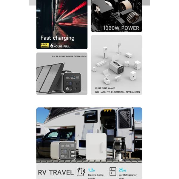 LiFePo4 Battery Portable Solar Generator Portable Power Station 1000w Home Moveable Images |
